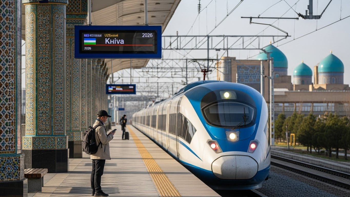 Uzbekistan is launching high-speed service on the Tashkent–Urgench–Khiva corridor in 2026. Plan to buy tickets from the official e-ticket site, travel to Urgench station, then transfer 30–60 minutes to Khiva by taxi, shared car, or local bus. Expect the new trains to cut travel time dramatically and run on modern Hyundai Rotem trainsets.