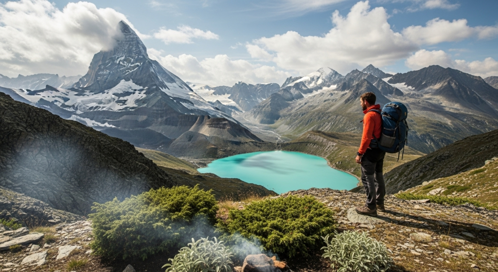 I was standing on a ridge in the Tian Shan range, looking down at a glacial lake so turquoise it looked like Gatorade poured into a rock bowl. To my left, a jagged snow-capped peak pierced the clouds – a dead ringer for the Matterhorn. The air smelled of wild sage and burning juniper wood.