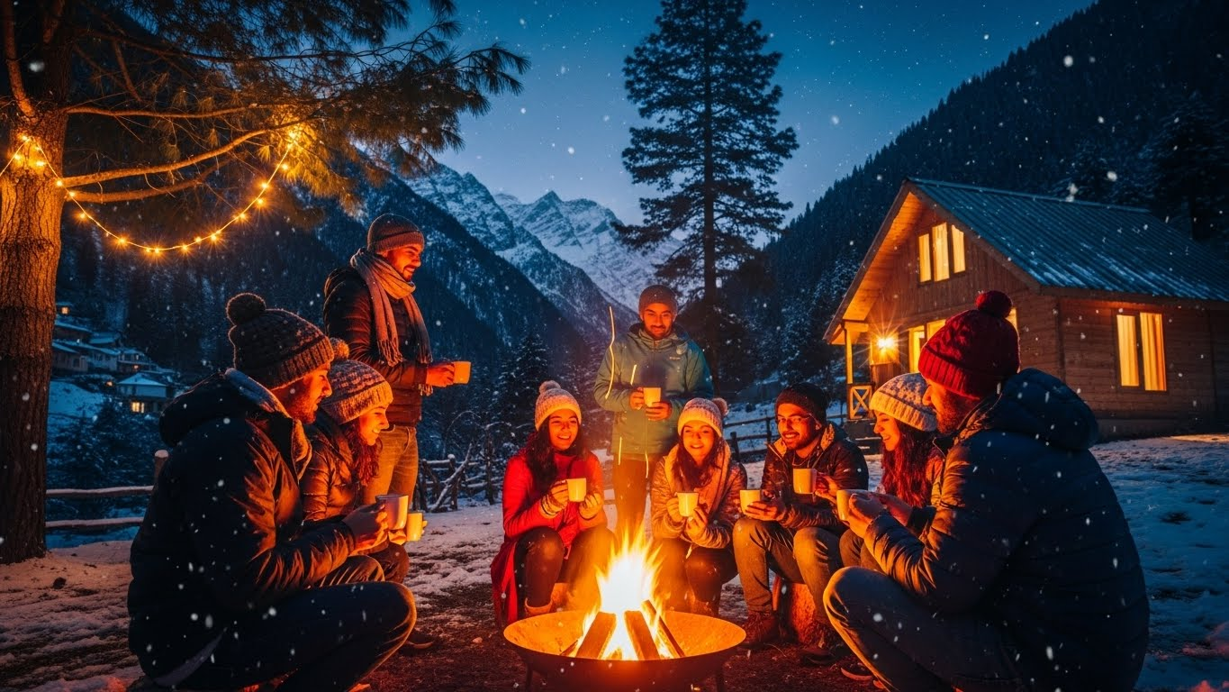 Tirthan Valley is quieter, cleaner, more intimate, and far more authentic for a New Year getaway. Manali offers nightlife and crowds, while Tirthan gives you bonfires, riverside silence, stargazing, and a slow, soulful start to January 1. If you want peace, nature, and real connection, Tirthan wins without trying.